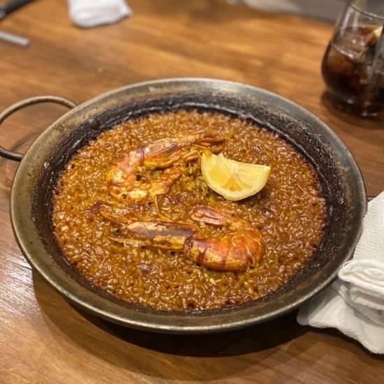 一番おすすめの海老のパエリアです。出来上がりには30分程お時間頂いております。サイズアップも可能です。